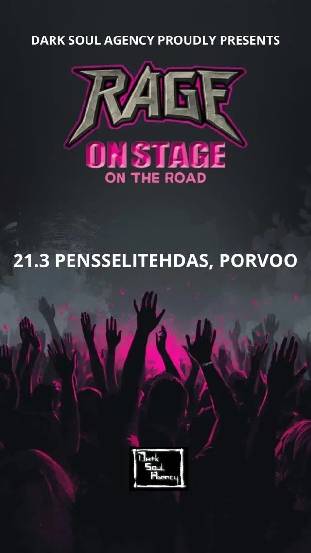 KEVÄÄLLÄ 2026 RAGE ON STAGE LÄHTEE KOTIPAIKASTAAN LAHDESTA JA SUUNTAA 4 KEIKKAA KATTAVALLE ON THE ROAD-KIERTUEELLE YMPÄRI ETELÄ-SUOMEN. KEIKKAPAIKKOINE TOIMII PORVOON PENSSELITEHDAS, VANTAAN SKENESALI, TAMPEREEN KOTELO SEKÄ HELSINGIN ON THE ROCKS.
